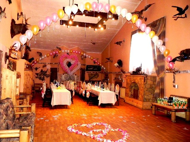 Наш опытный персонал всегда рад помощь осуществлению любого творческого замысла.На территории клуба имеется 2 банкетных зала: маленький зал «Сказка» и большой зал «Каприоль», стилизованный в духе охотничьего замка с камином и трофеями животных.